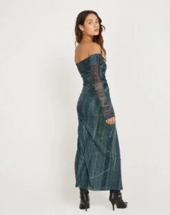 Bernoki Mini Dress In Drape Sequin Forest Green