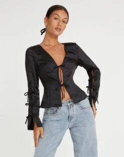 Ruhara Long Sleeve Top In Satin Black