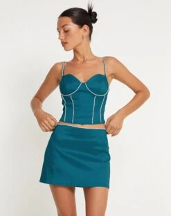 Strappy corset top in an aqua blue, featuring a cropped fit and diamante detailed embellishments. Pair with our matching Moray Skirt.
