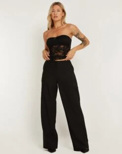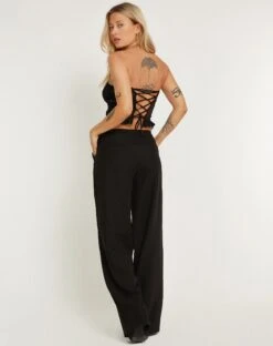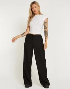 Low-rise straight leg trouser in a baggy fitting soft tailoring fabric, with clean waist. Features side pockets and welt pockets at the back. We love to style with the Shaka top.