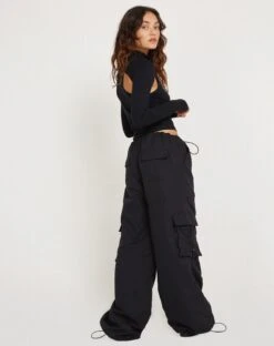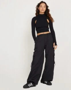 Stay stylish this season with our Bandi Top. In black lycra, this long sleeve top features cut out detailing and thumb slits, with a high neck and an exposed racer back. Complete the ‘fit with our Hansa trouser.Â