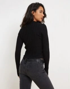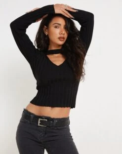 We are obsessing over the Belen top. In a rib black, this top includes long sleeves with a cutout detail on the front. We love to pair with our Ai cargo skirt.Â