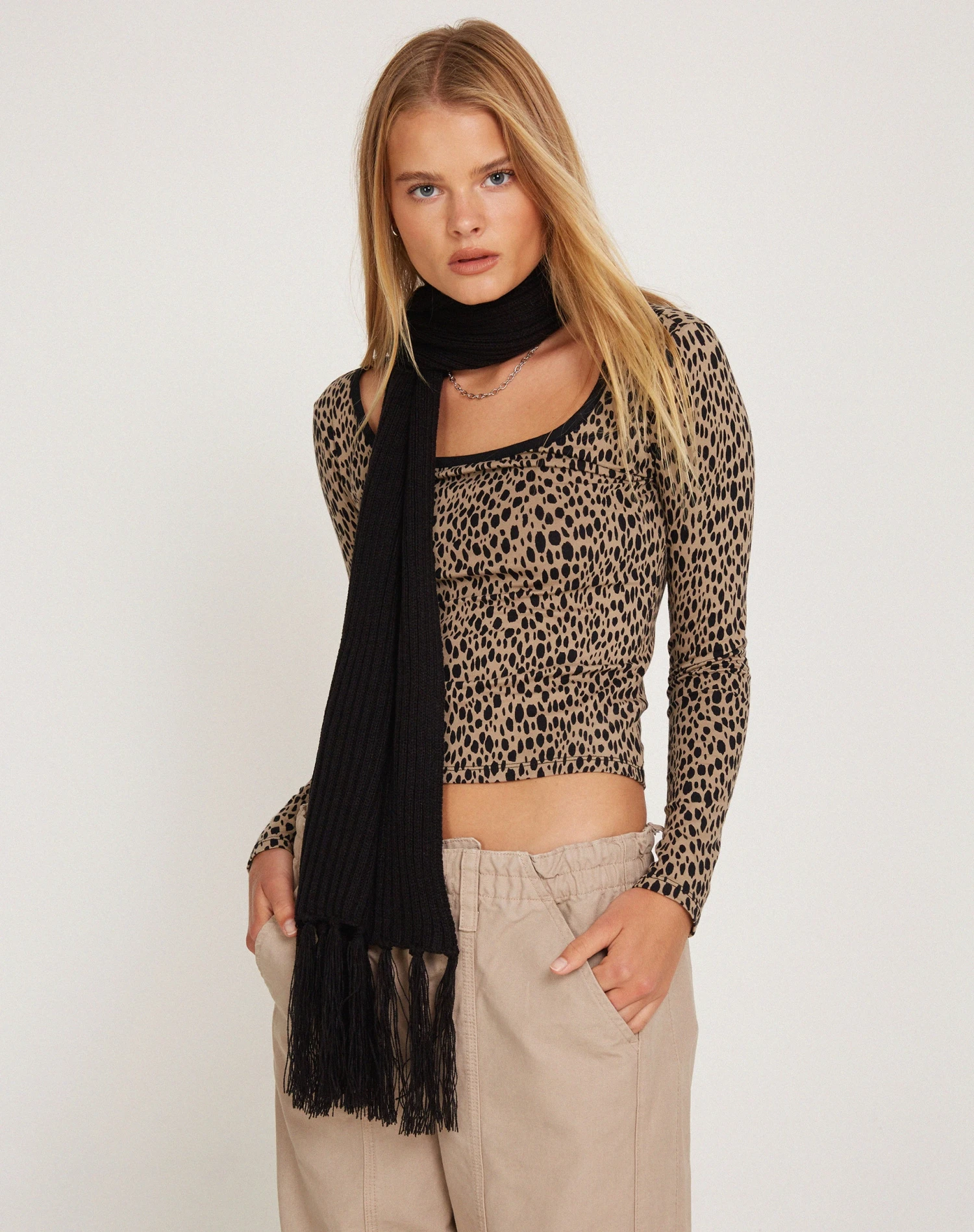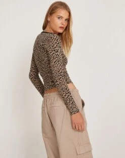 Spice up your casual looks with the Beshi top. Featuring a crew neckline, long sleeves, and a striking cheetah print. Complete the ‘fit with our Hansa trouser.Â