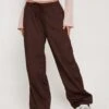 Low rise cargo trousers with a wide leg, concealed fly and a cargo patch pocket on the lower left leg in a heavy cotton dark grey colour. Style with our Brandy crop top in black for classic look.