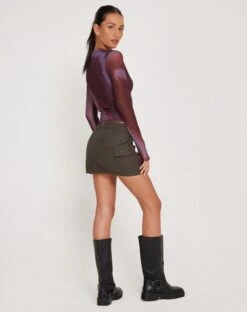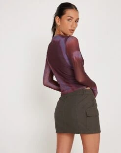 Bring a bit of colour to your wardrobe this season with our long sleeve Bowie top. Featuring a cropped fit with a watercolour design in wine mesh. Complete the look with our Ajeng skirt.Â