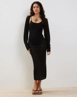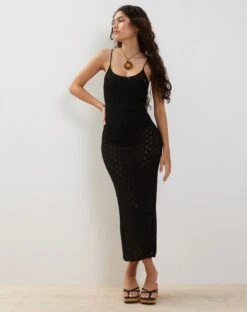 Your new favourite summer dress is here. The Caroline dress features thin straps in a mesh black material with a maxi length hem.Â
