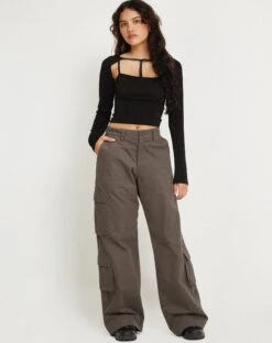 2 piece set in black slinky stretch crepe fabric. Made up from a long sleeve shrug featuring a silver d ring fastening paired with a cropped tank top with a square neckline. Complete the ‘fit with our Shan Trouser.