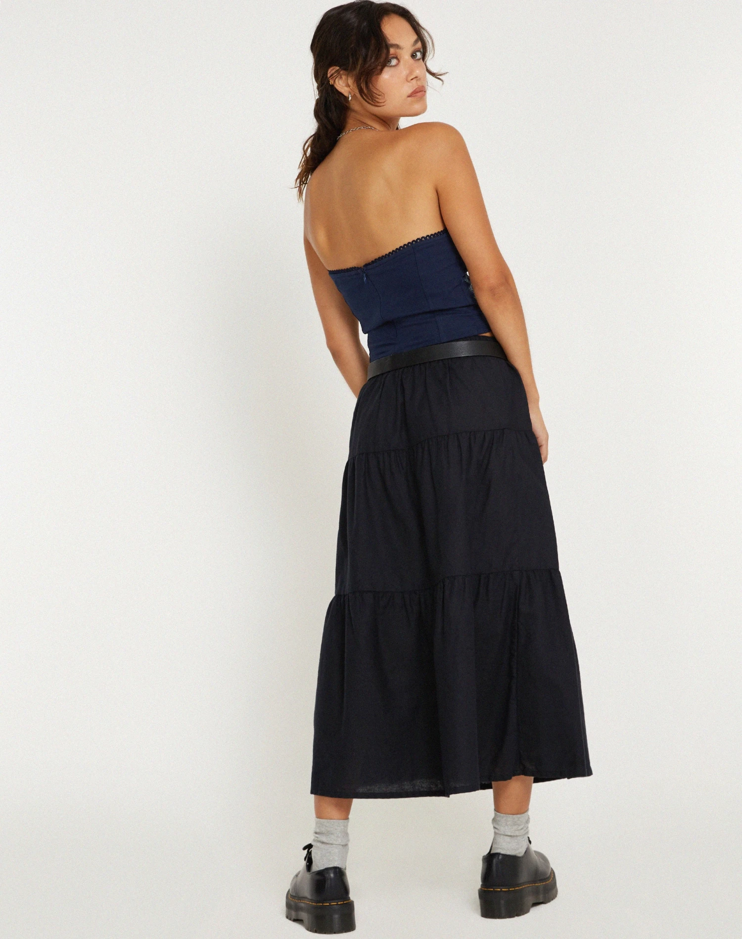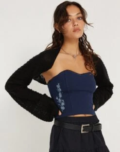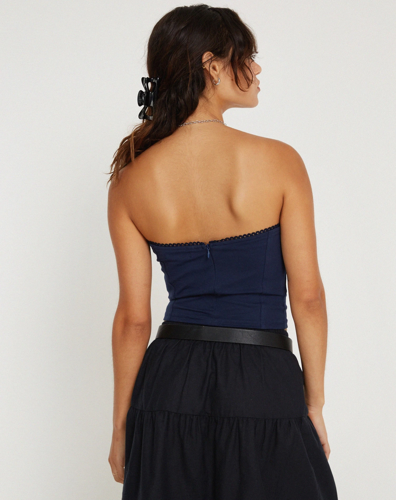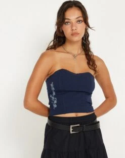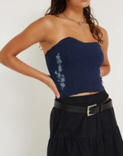 Cropped bandeau top featuring an embroidered butterfly floral motif. Complete the look with our Remax Maxi Skirt.