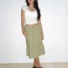 The Cordelia skirt features a low rise, mini fit and a waterfall hem with subtle pleating in ivory. Detailed with crinkling to the waistline and a lettuce trim. Get the look with the Carillo vest.