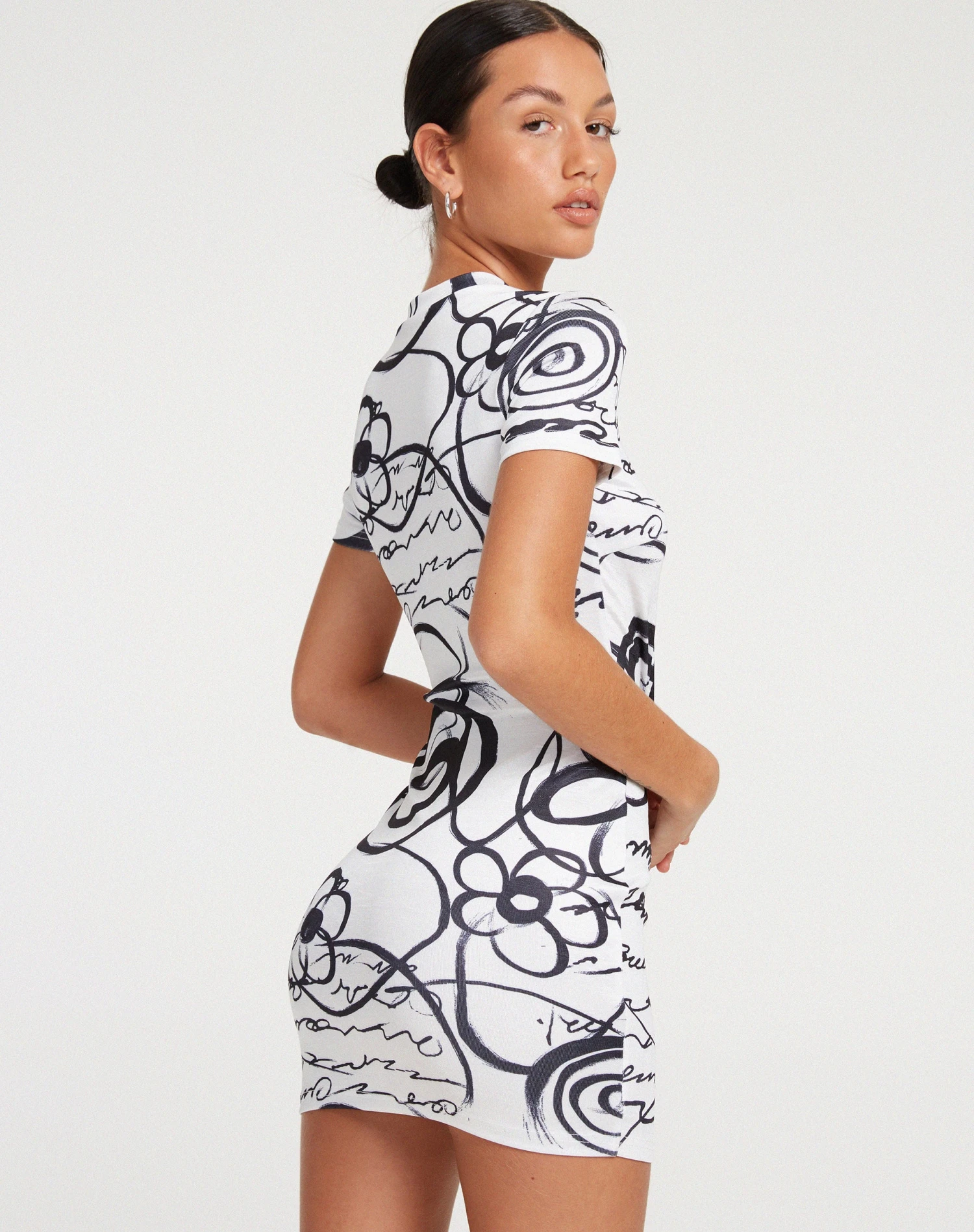You provide the event, we’ll supply the dress. The Dahara features a mini, bodycon fit with short sleeves and a high neck. Style with some chunky black shoes this season.