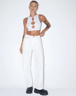For a basic with maximum style, our Danica top is here. Featuring a cropped sleeveless fit with cut out detailing in white. Keep it casual by adding a denim pairing.