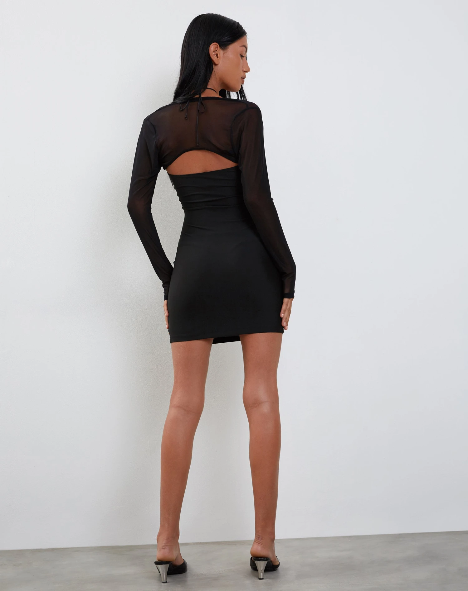 Everyone loves a little black dress, the Deluna features a mini fit, long sleeves and tie up detailing around bust with halterneck detail.