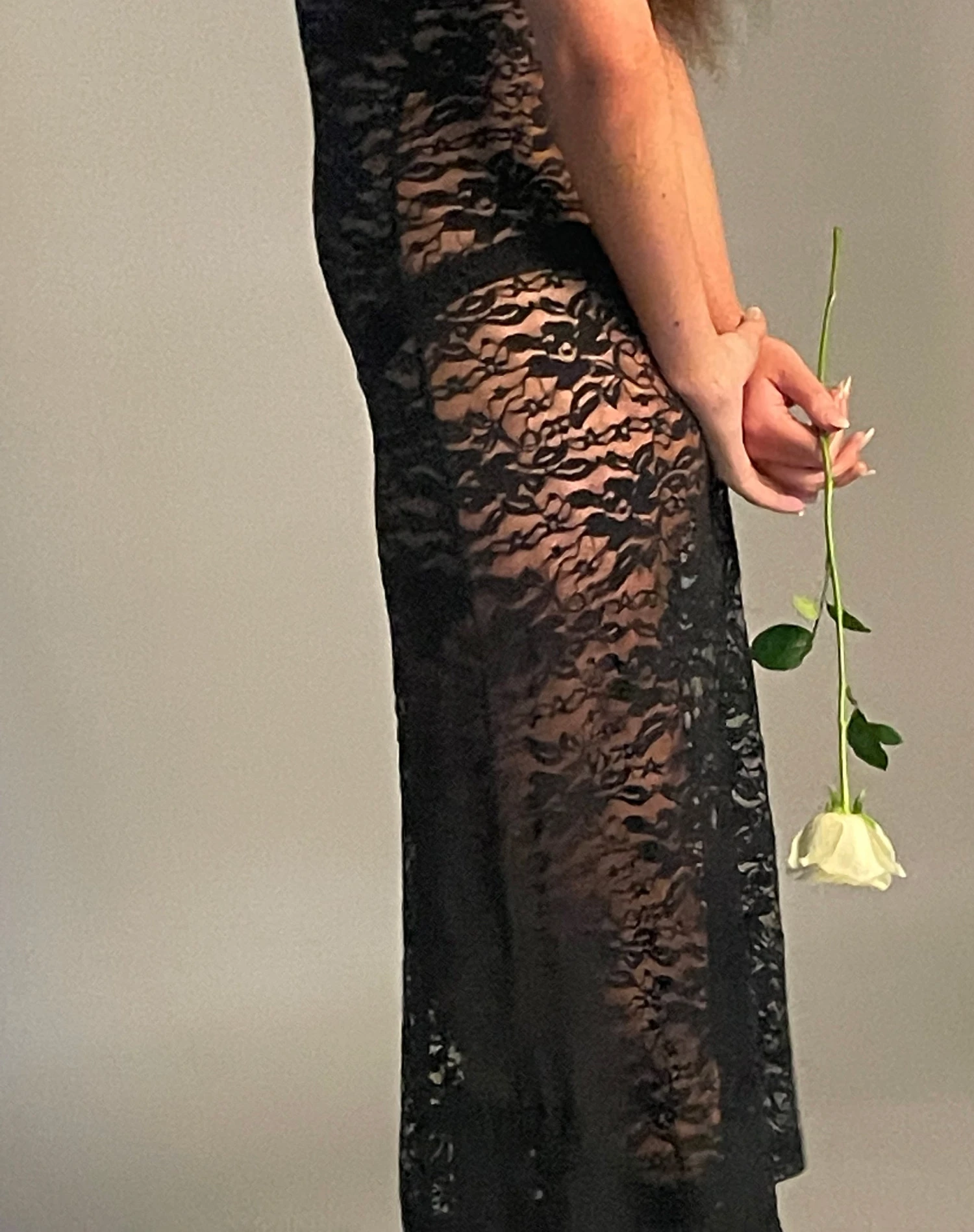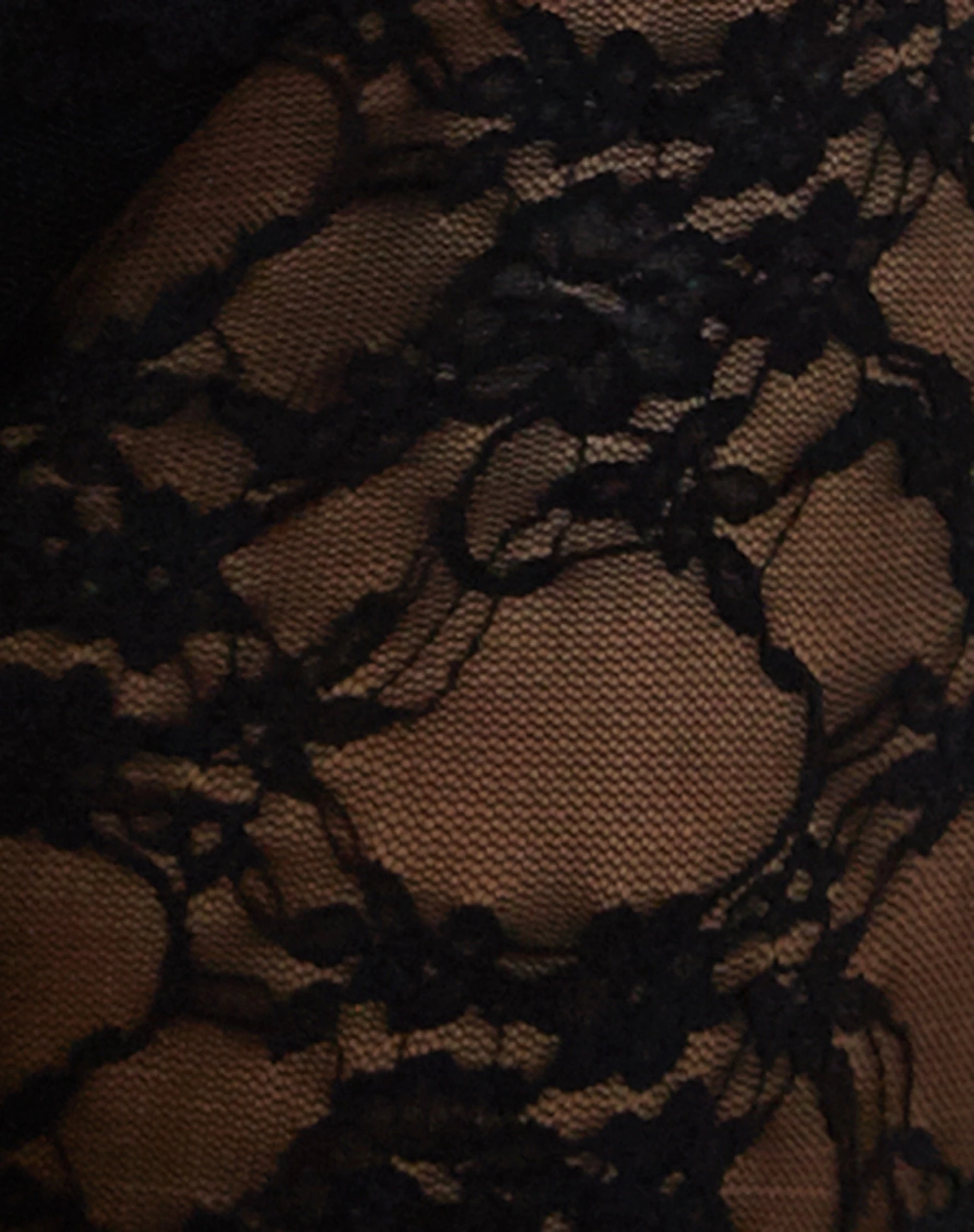 In black, this all over lace unlined midi dress features short sleeves with black design with a scoop neckline and a-line fit.
