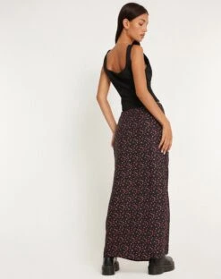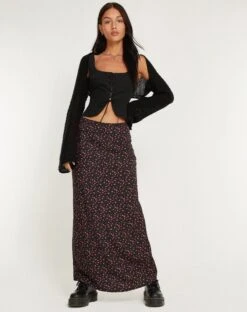 Low rise, maxi length skirt in a ditsy pink rose print on a woven fabric. Style with our Inga Corset for a romantic ‘fit.
