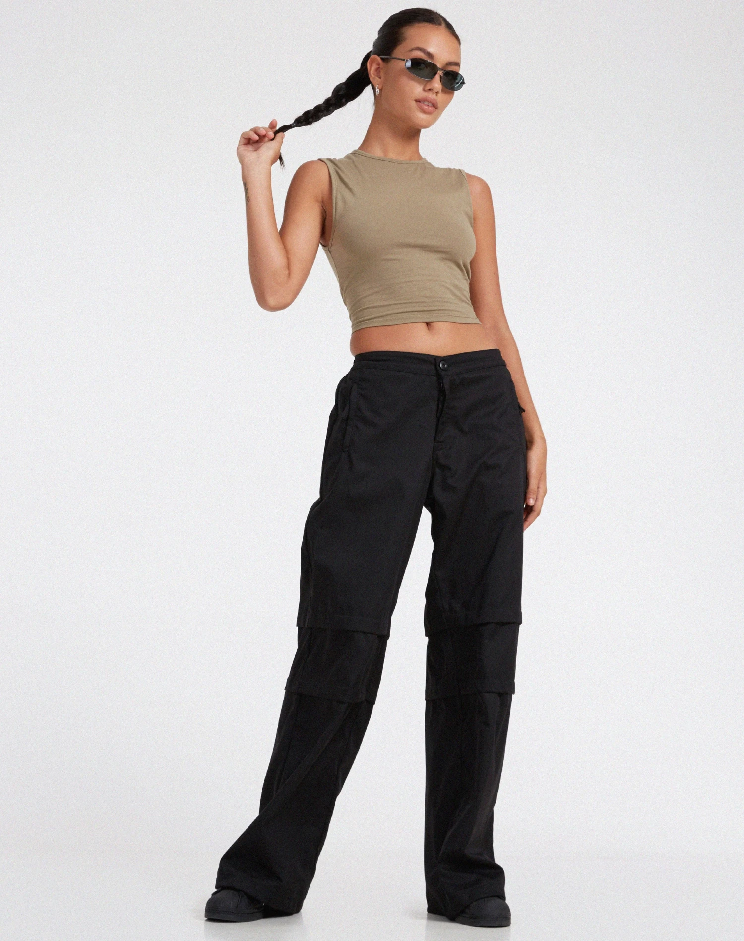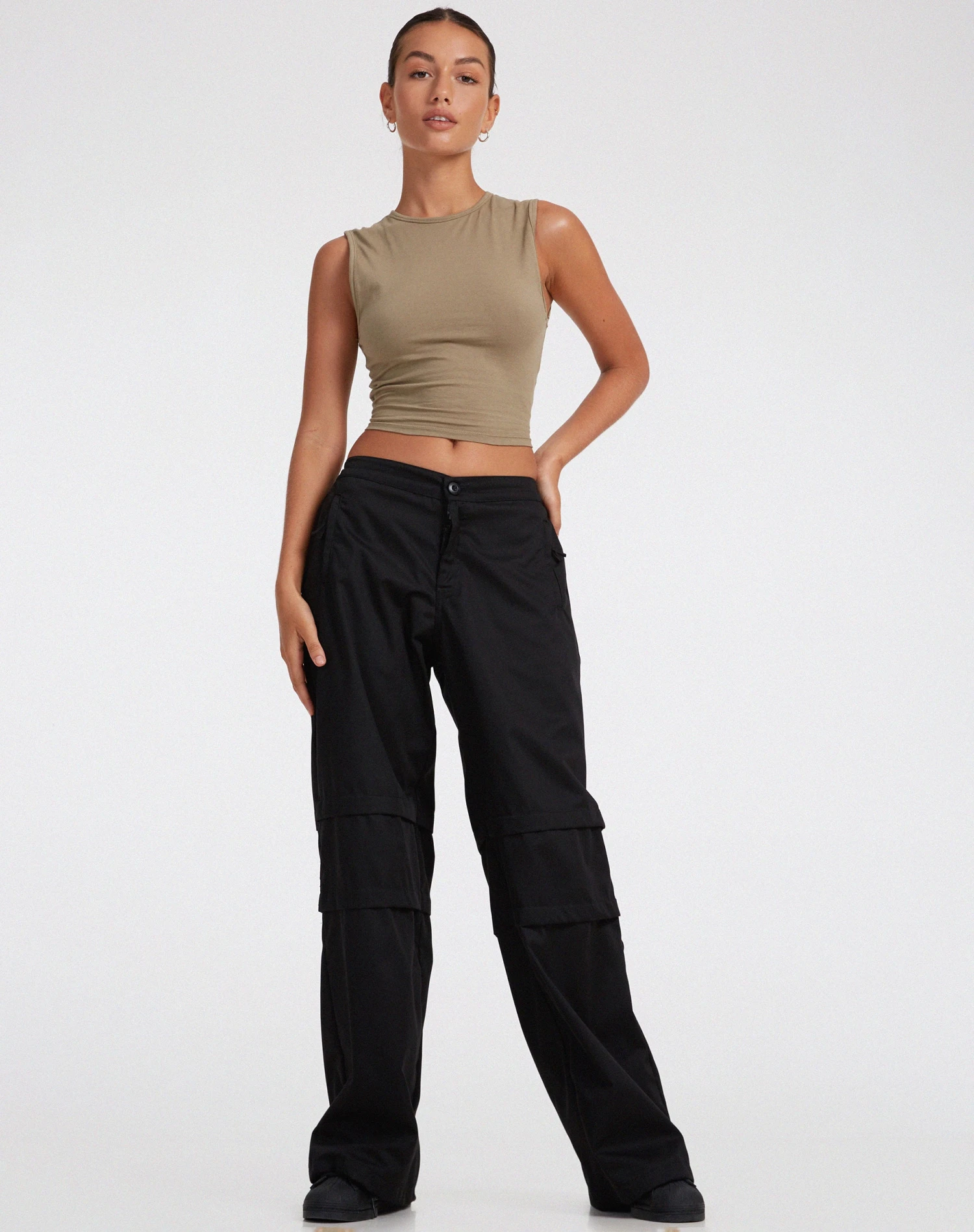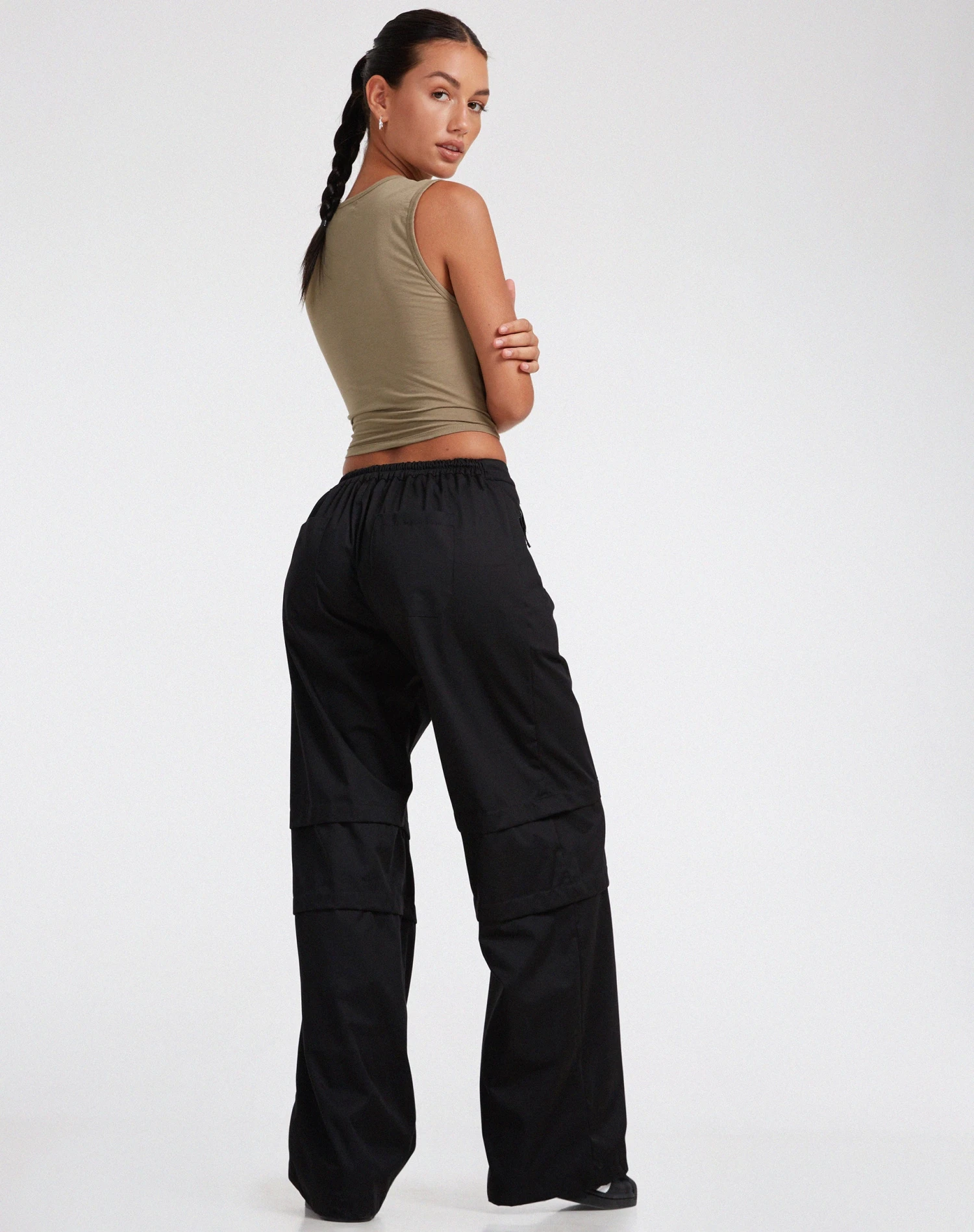 Our Eilid trouser is the perfect go to for a classy meal or drinks. In drill black, they feature a high waisted fit, flare leg design and pocket detailing. Style with the Monlo top.