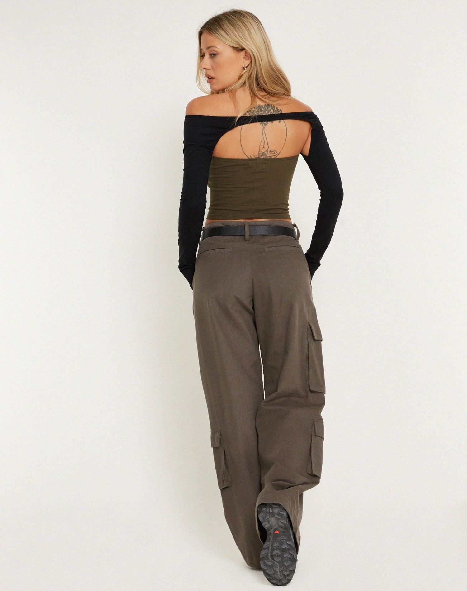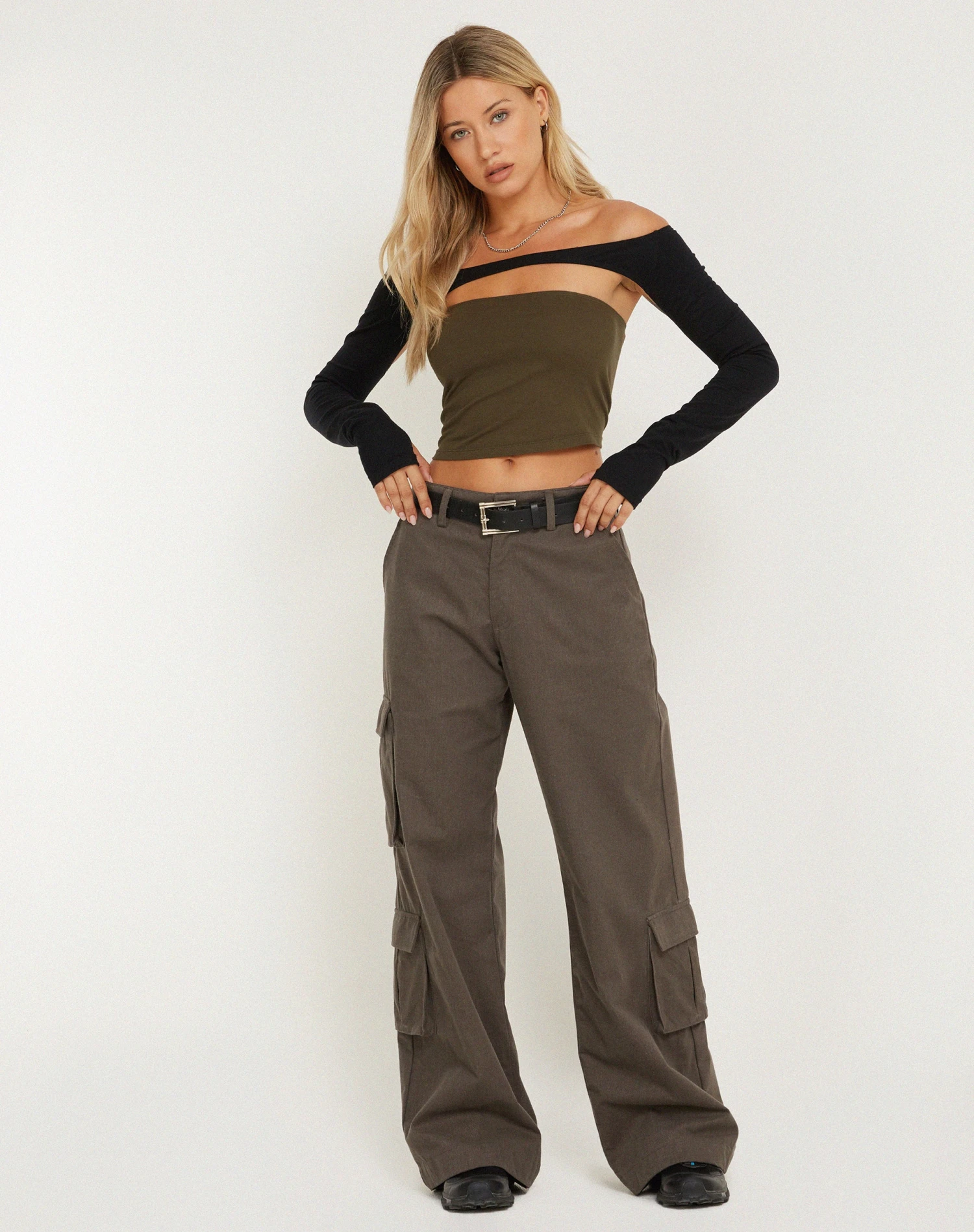 Make layering simple with our Eloa shrug top in black lycra. Featuring an off-the-shoulder design with long sleeves and thumb holes. Complete the fit’ with our Shae Bandeau and Shan Trousers.