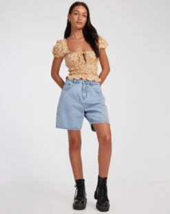 Br ready for the sun with our Galo top. This floral printed piece features short sleeves, a square neckline with tie up front and pretty hemline. Style with our Dad shorts for an effortlessly trendy Summer look.
