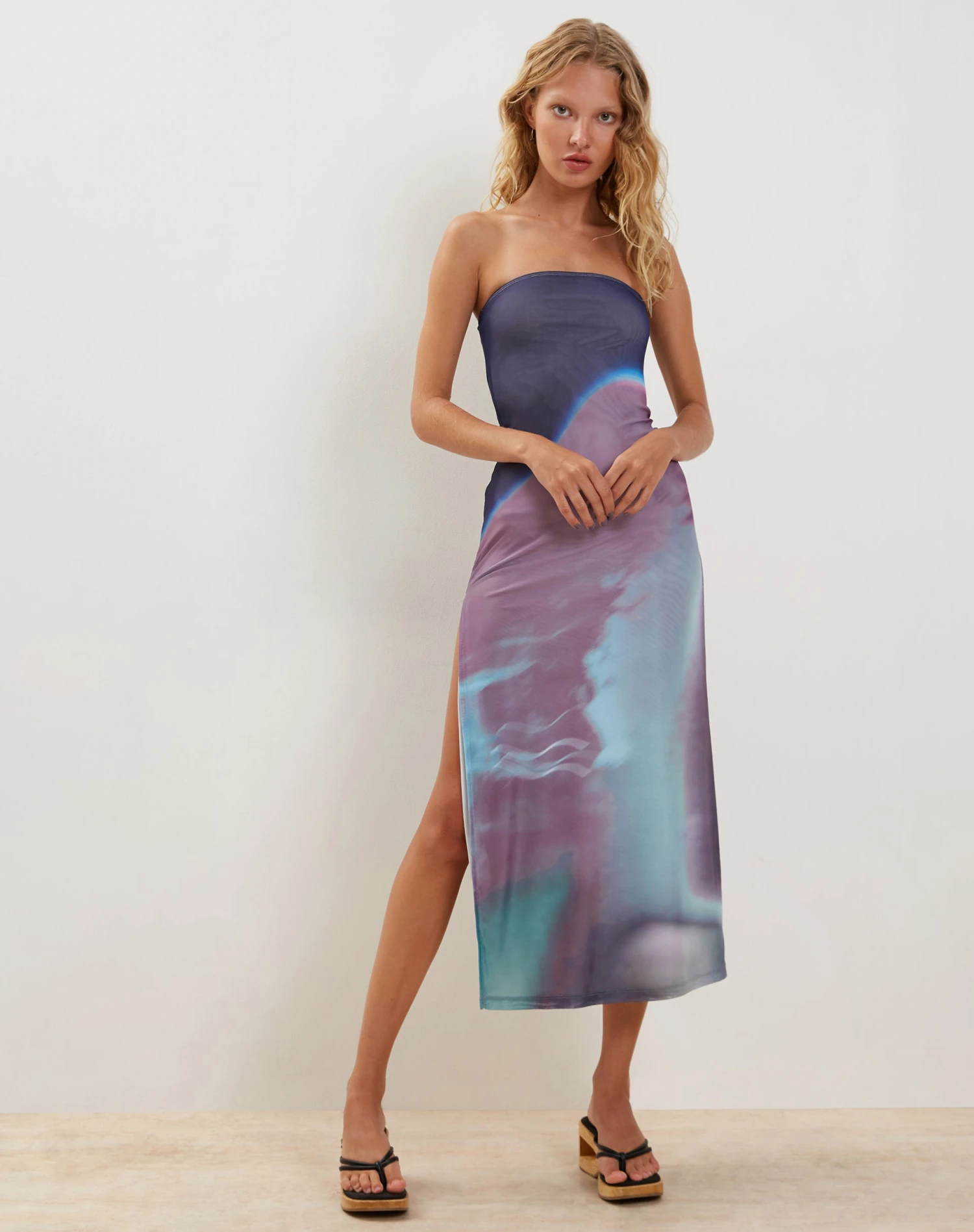 The Givanda Bandeau Dress features a bodycon fit and a maxi length, in pink digi graident print – perfect for the warmer weather.