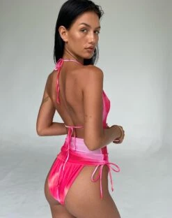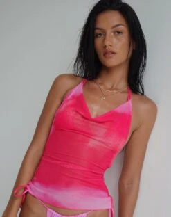 In Watercolour print, the Hakoni mesh top features cropped fit with a halterneck neckline.