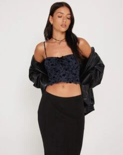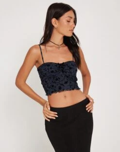 Stay simple yet chic with our Halusi top. In a floral printed mesh fabric, it features a cropped fit with cami straps and a square neckline. Finished with a lettuce hem and decorative bow at the front. Complete the look with our Tsuna skirt.Â