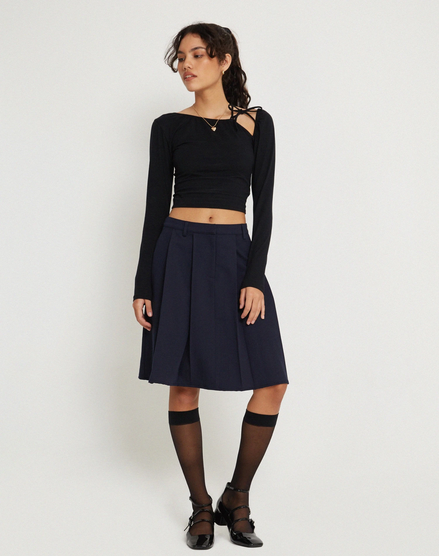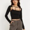 Spice up your basics with our Hedva top. In a black lycra fabric, it features a loose fit with long sleeves and a crew neckline. Finished with a tie up cut-out detail to shoulder.