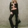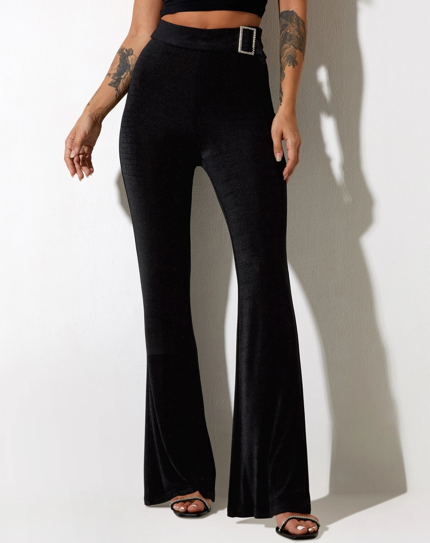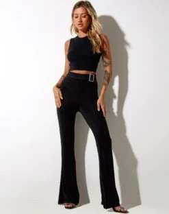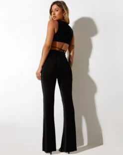 A black trouser is an essential base for your look. The Hermima trouser, in a crepe black, feature a flare leg and high waist with diamante detailing. Team with a basic black crop for a simple but stylish look.