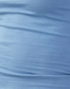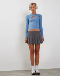 Elevate your wardrobe with our Kaze top. Featuring long sleeves, asymmetric neckline with one shoulder layered design and cut out detail to chest in light blue denim. Style with our Casini skirt for the perfect fit.Â