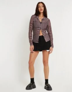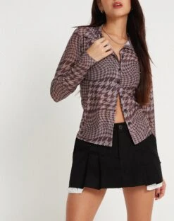 Long sleeve, button up shirt in a fully lined printed stretch mesh fabric. We love to style this top with the Lidya skirt.