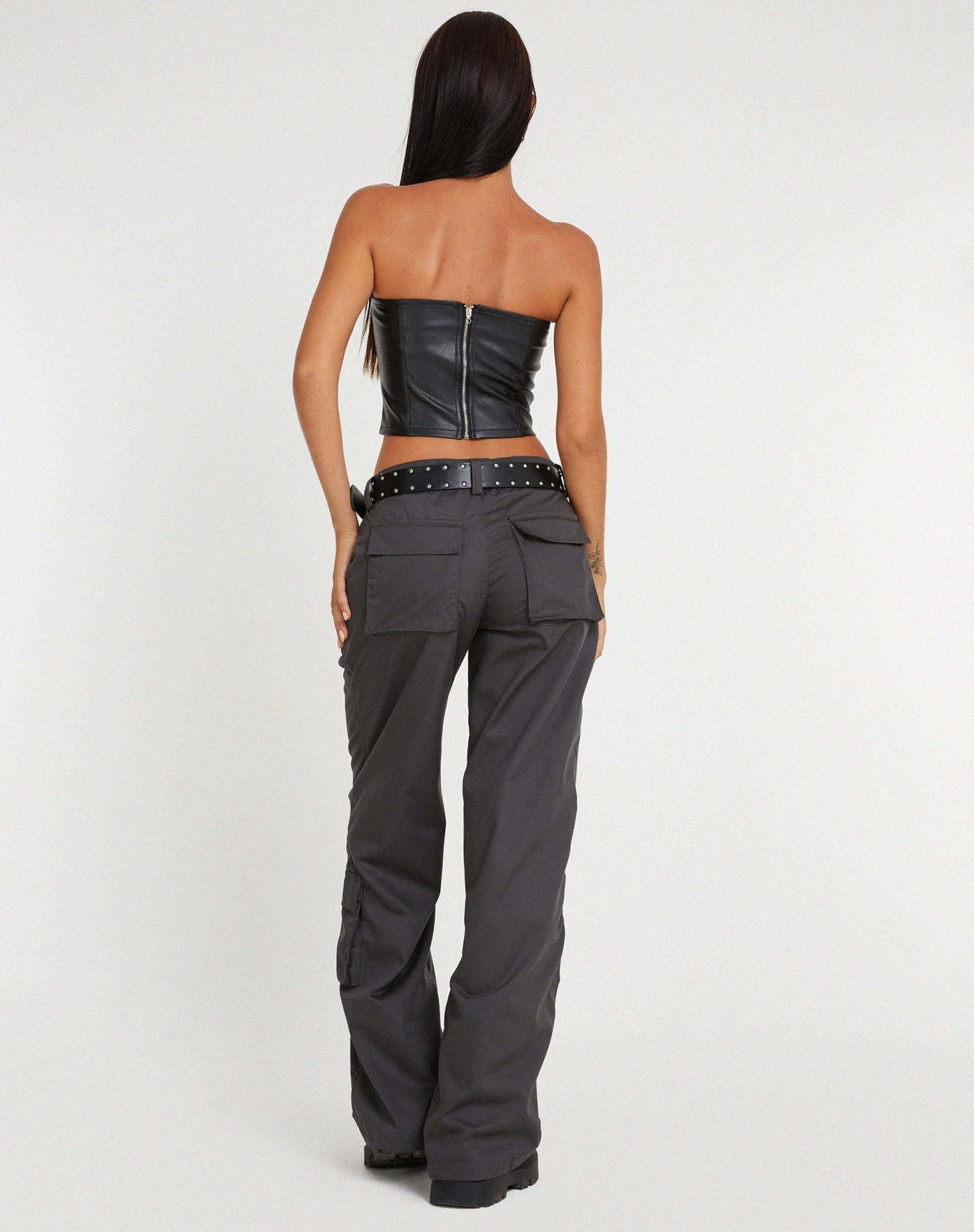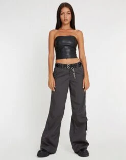Feel fierce in our Kyanata corset. This must-have top features a cropped sleeveless fit in PU black with zip up back . Style with some cargo trousers for a chic combo.