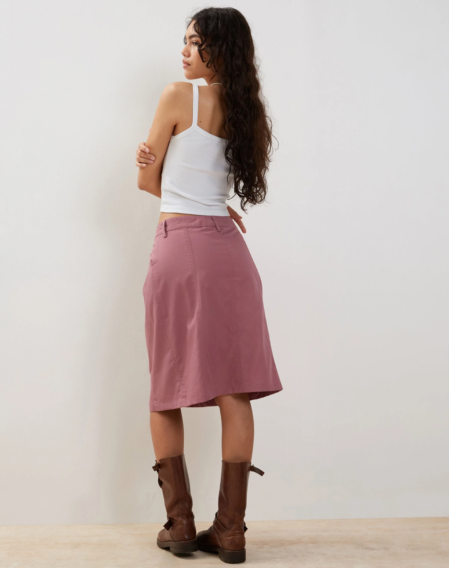 Introducing our Kyst cargo skirt in mauve. Featuring a midi fit with low rise waistline, front button fasting and zip with a seam detailing design in a non-stretch fabric. Pair with our Aus top for the perfect ‘fit.