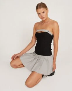 The dress that will turn heads is here. Lisma is the perfect mini dress with bandeau fit top and drop waist, a pleated skirt in black and cream contrast. Featuring a cream band across bust with cut out detailing.