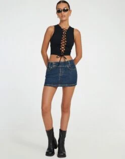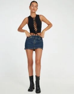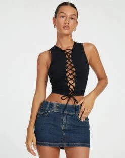 Spice up any outfit with our Lyn top. In black, it features thick straps, a sleeveless design and adjustable straps that fasten all the way up the front. Style with our denim skirt.