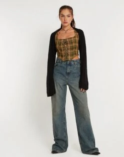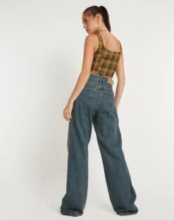 For a statement style, opt for the Milton top. In tartans green brown, it features a corset fit with a square neckline and tie up detailing. Complete the ‘fit with our Roomy jeans.Â
