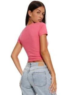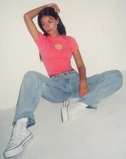 Looking for a cute casual tee? We’ve got you covered with our Babe tee. In 90s beachy floral, it features short sleeves, a crew neckline and fitted design. Wear with some parallel jeans to get the look.