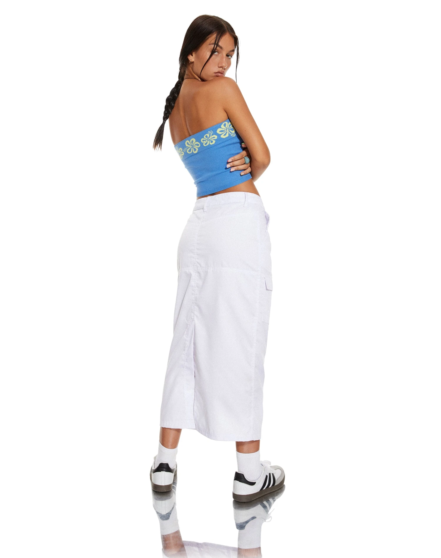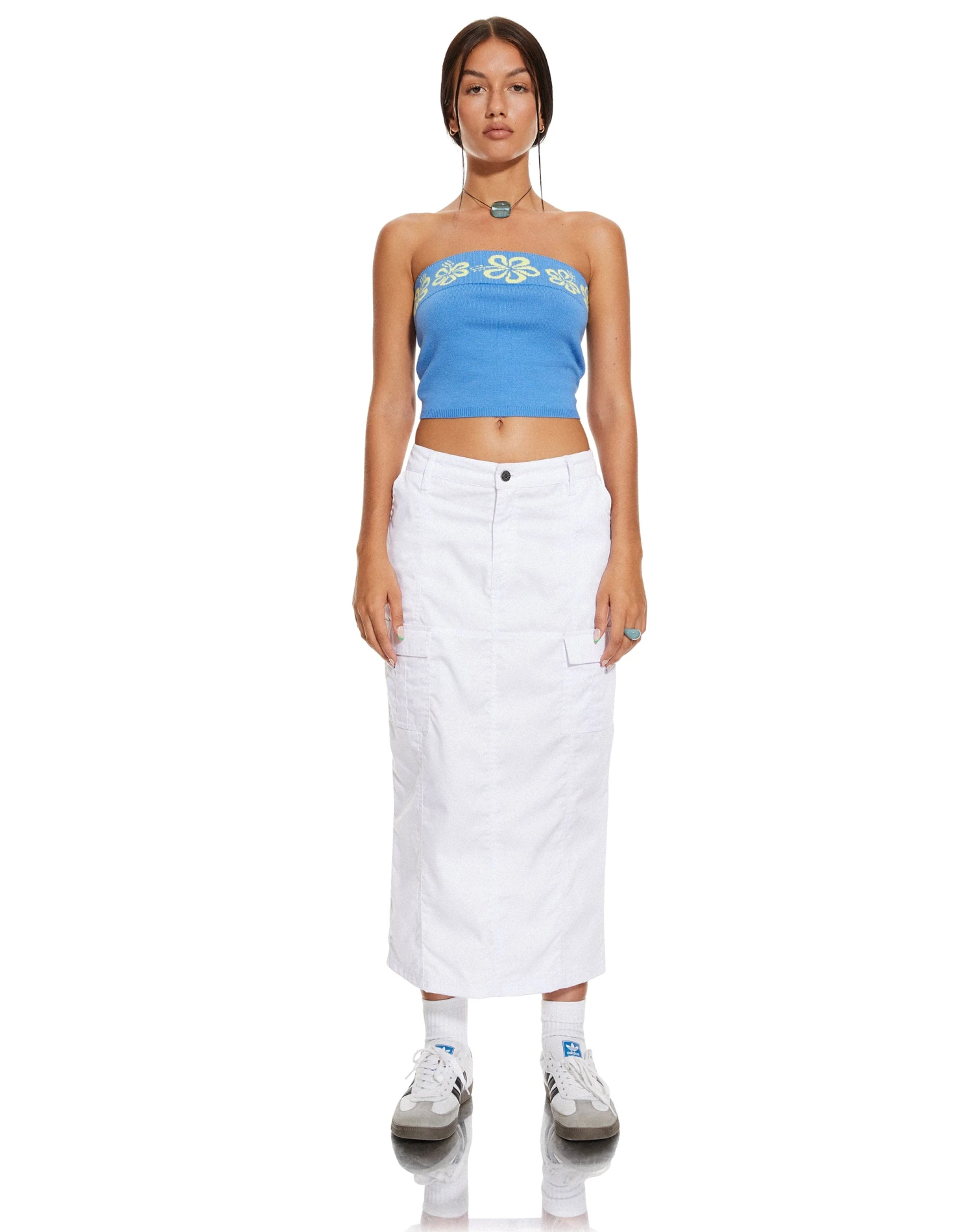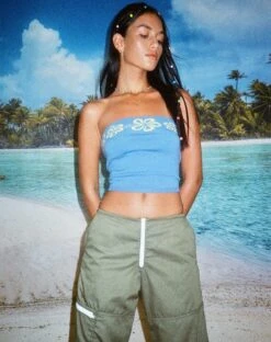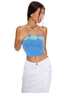 Never feel blue in the Delina. This top features a crop fit and strapless design and looks super cute styled with the matching Danina skirt.