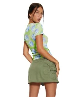 Your new summer tee has arrived, the Tika top. Featuring short sleeves and crew neckline in a neon brushstroke floral print. Style with the Zephyr Mini Cargo Skirt in Cotton Drill Olive.