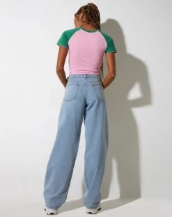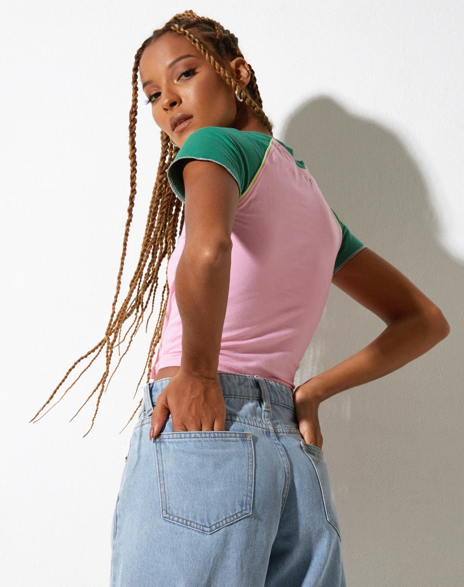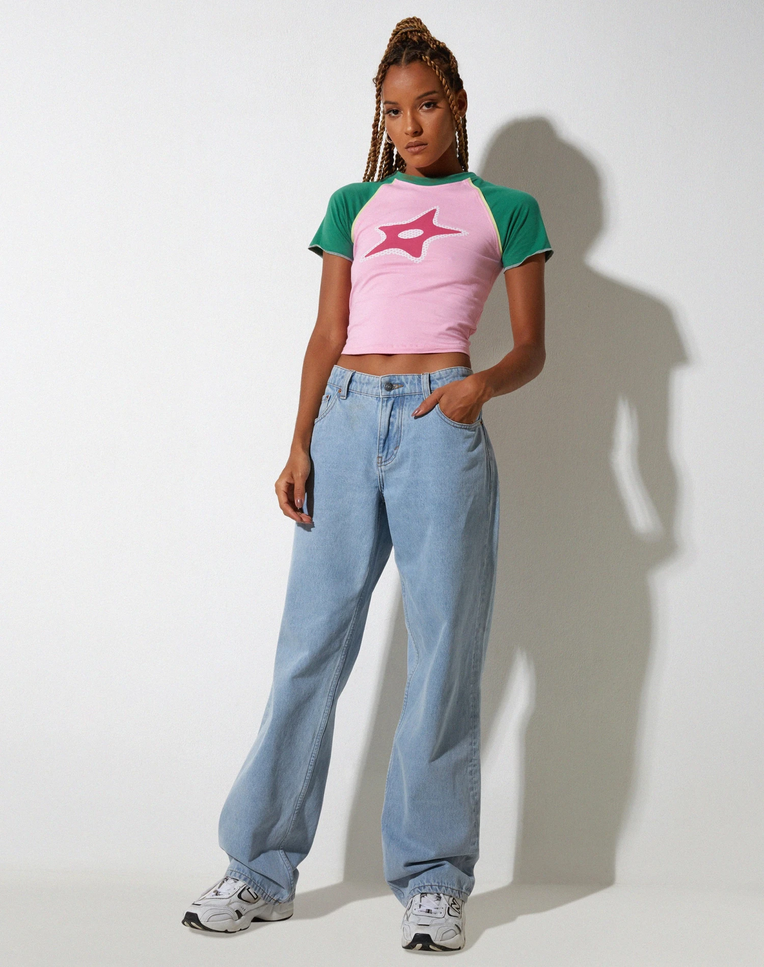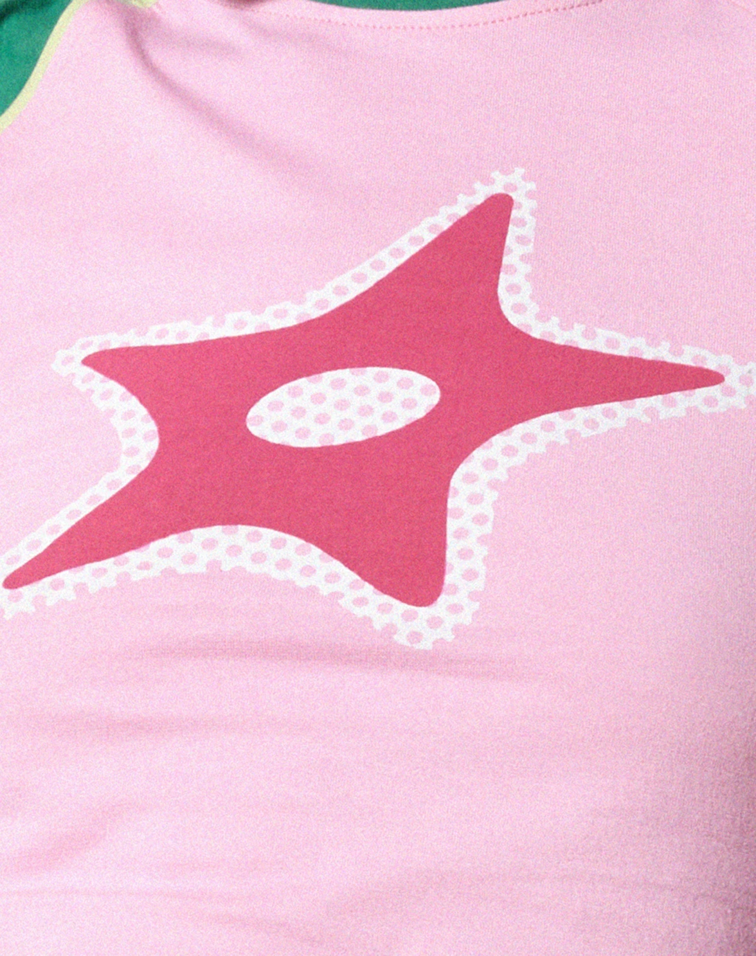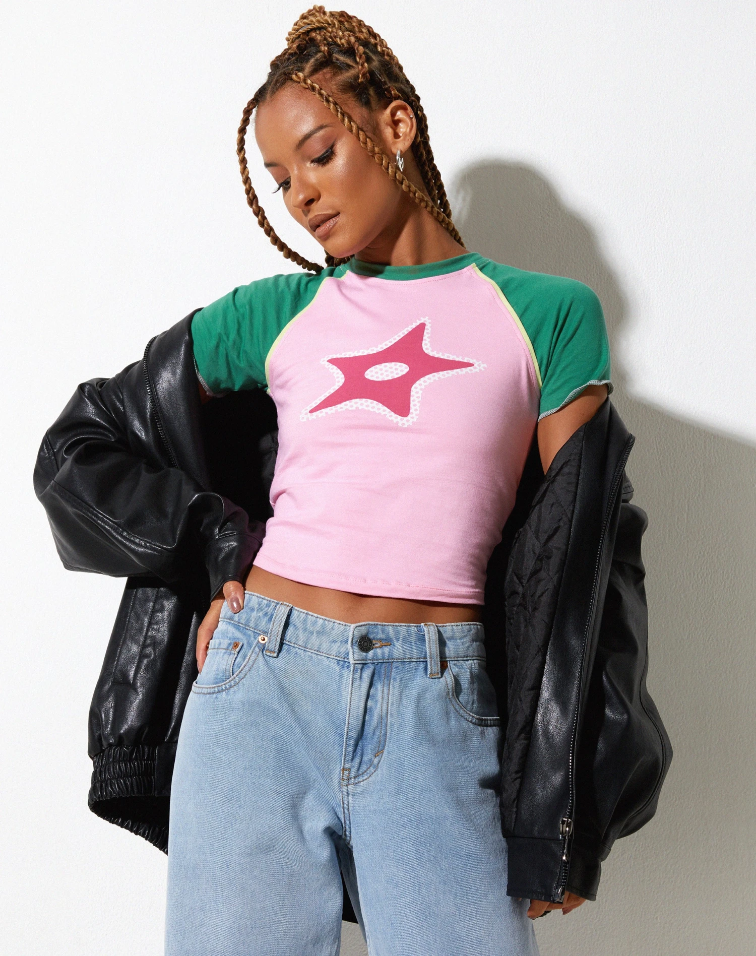 Pink shrunk tee with a star motif featuring a crew neckline and cropped fit. We love to pair with our favourite jeans.