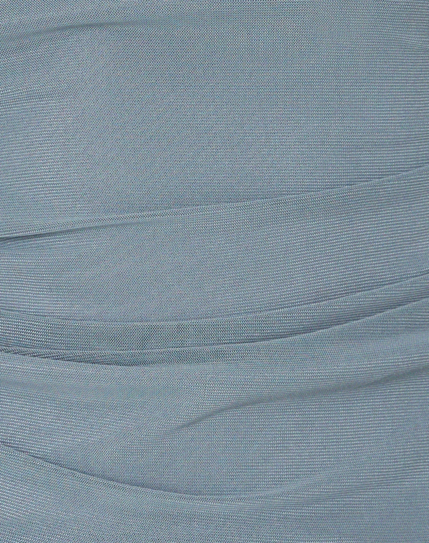 Long sleeve mesh top in blue grey. Featuring a full length body and bardot off-shoulder twist detail design. For a relaxed ‘fit, wear with our Frayed Low Rise jeans.