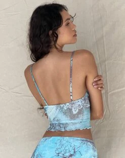 The cutest cami you need. The Norde Top features thin straps, a blue ribbon bow detailing at the front and comes in a blue paisley abstract rustic print. Pair with our matching Cinta skirt.Â