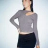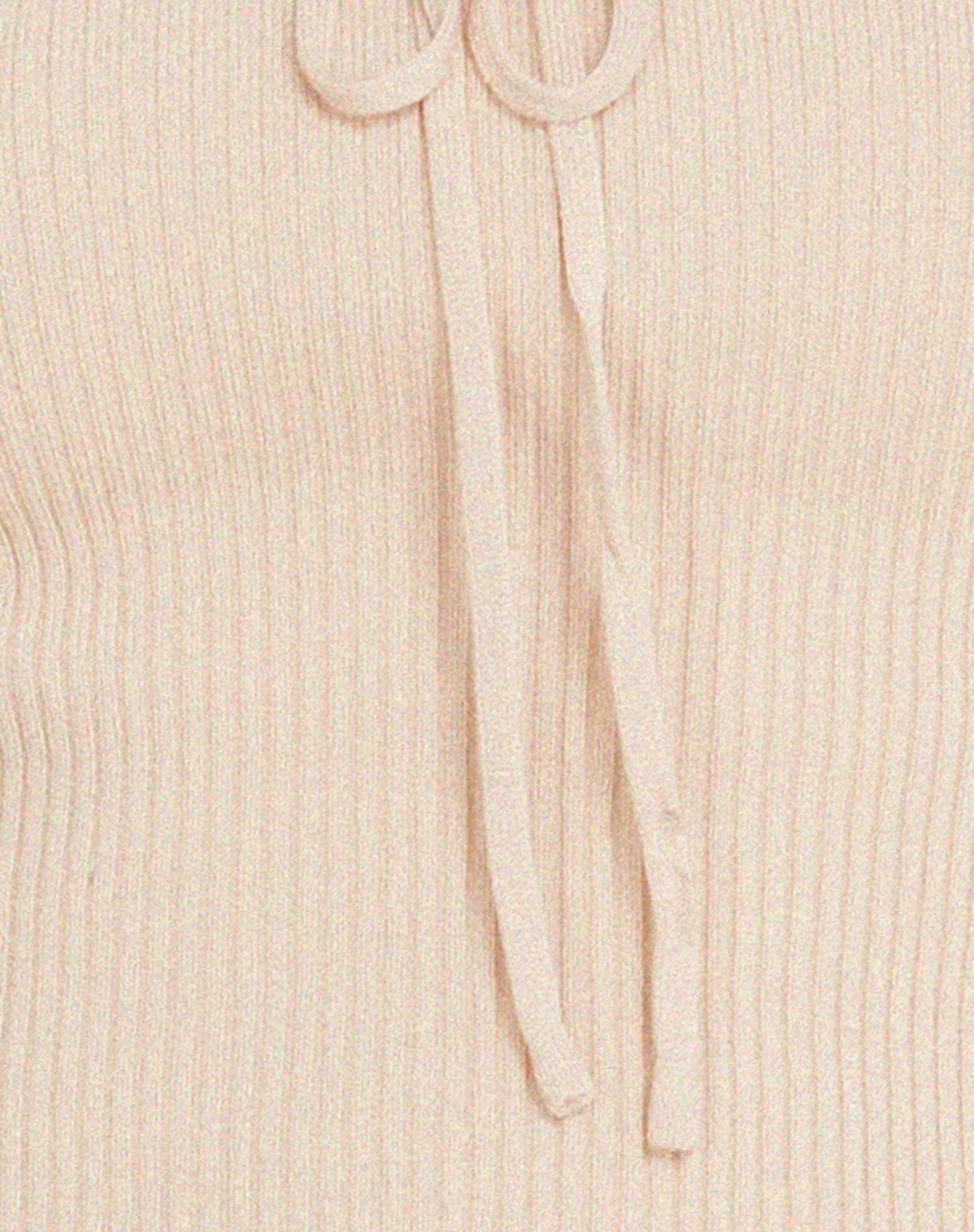 Our Nuala top is the perfect basic. In a cream rib knit fabric, it features long sleeves and a square neckline with tie straps. Complete the ‘fit with our Casini skirt.