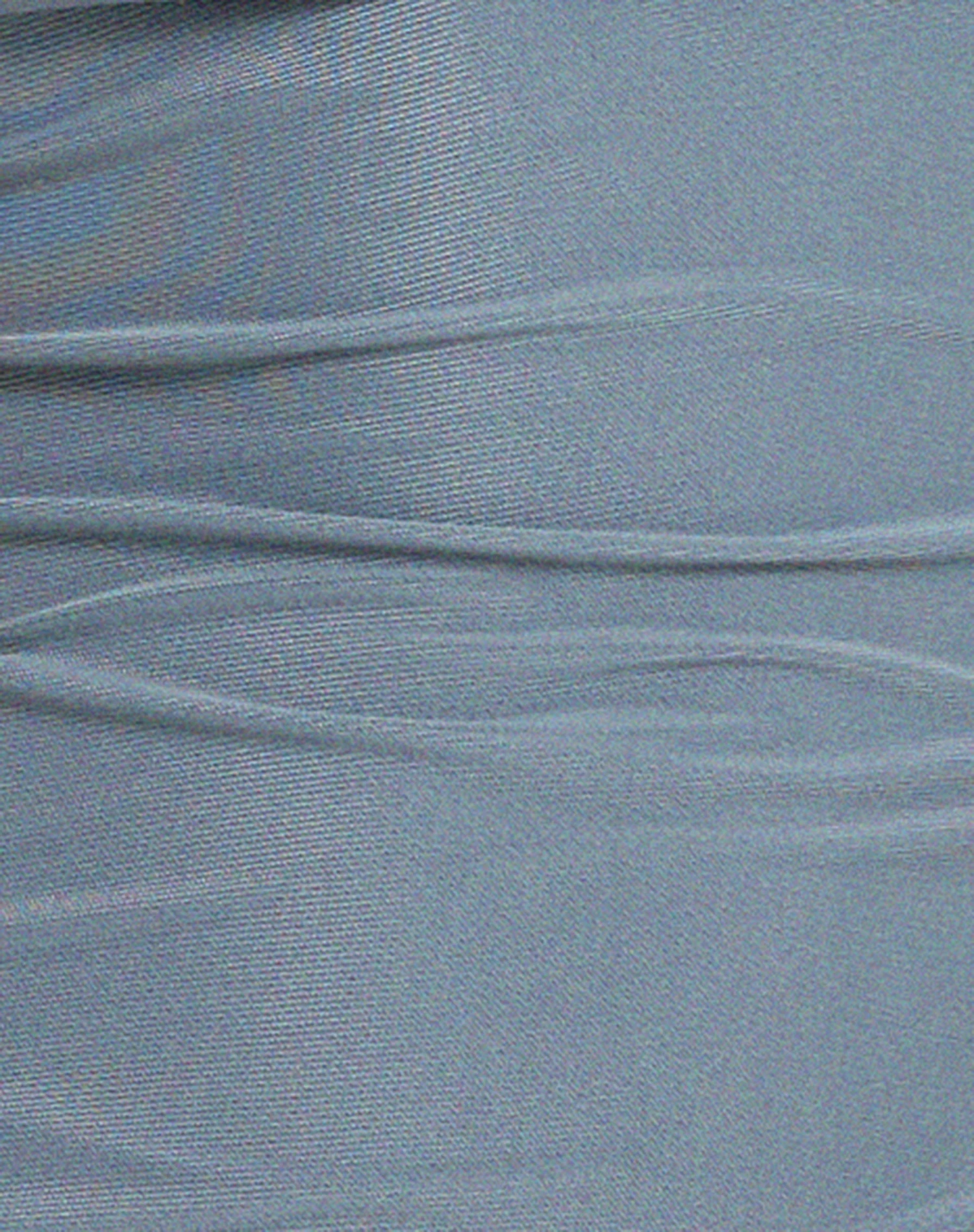 Slinky mini dress in goblin blue, with a cowl neckline, thin asymmetric straps, and a lettuce hemÂ