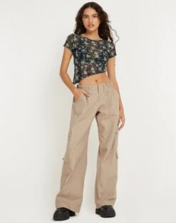 The Rambu top will freshen up your florals. Featuring a cropped fit with short sleeves and crew neckline in a pretty floral green print. Style with the Hansa cargo trousers in stone.