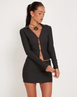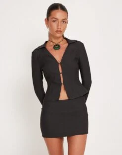 This Anchor shirt is perfect for date night. Featuring a plunge neckline with silver fastening and collared detail with long sleeves. Complete the co-ord with our Becca skirt.Â