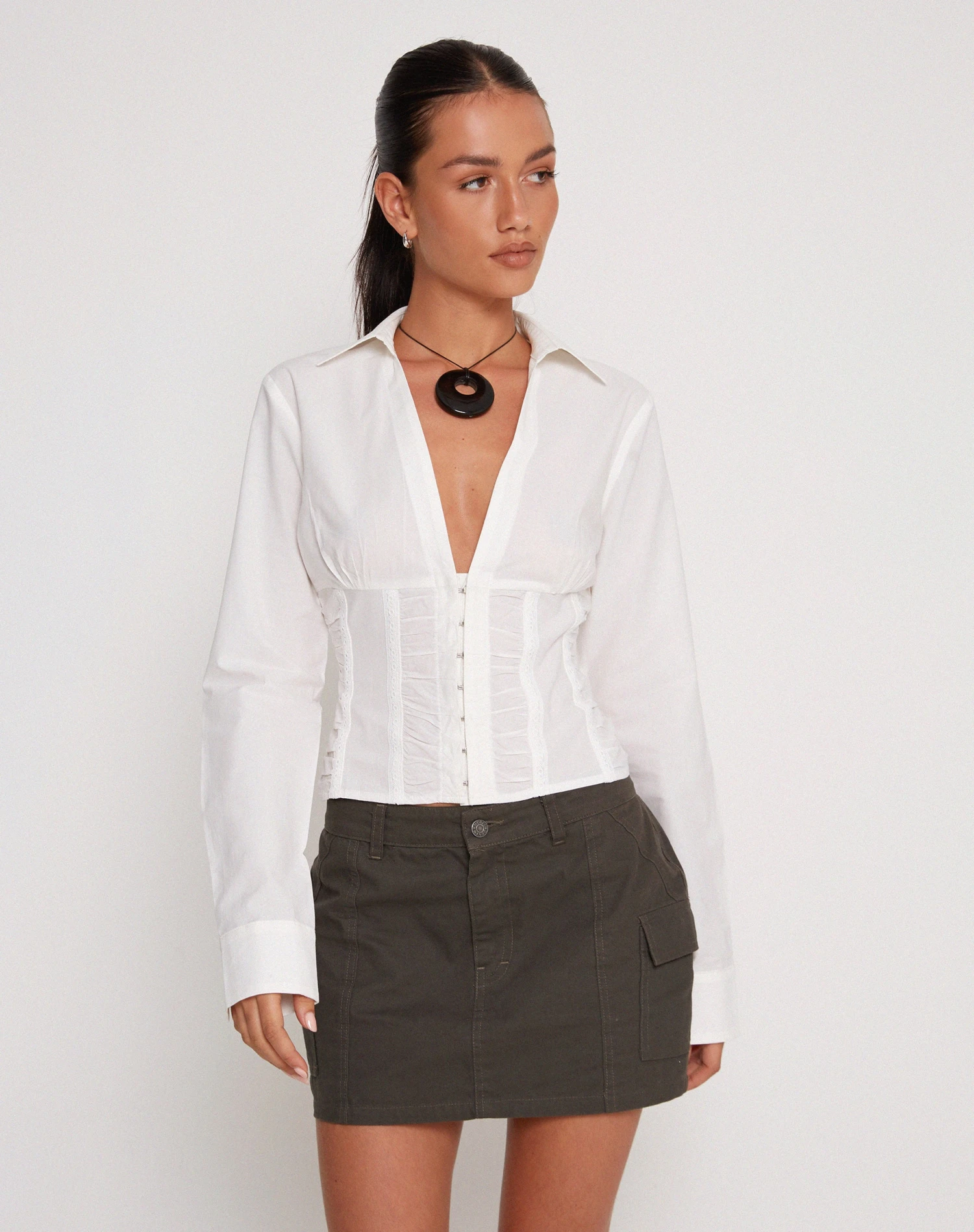 Perfect for day or night. The Rohan Shirt is a white fitted top that features long sleeves and a deep V neck.