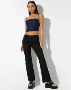 Simple but stylish, our Rosta top is here. Featuring a cropped fit with thin straps in a denim blue. Style with our Jopan trousers in black to complete your look.