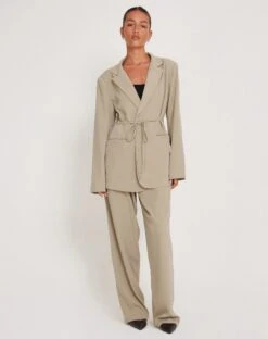 In a taupe heavy tailoring fabric, our Sabria trouser feature a mid rise fit with a zip fastening, wide legs and belt loops. Complete with tie strings at the waist for an adjustable fit. Style with our Quebon top and matching Mayta blazer for a complete ‘fit.