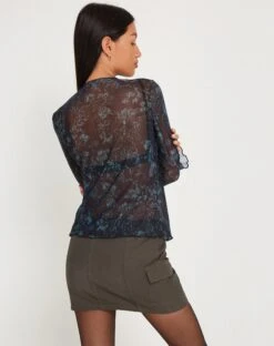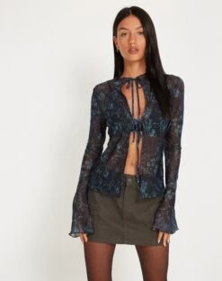 In a floral printed mesh fabric, our Sadama cardigan features long, poet sleeves, a high neckline, and tie up fastenings at the front. Finished with a lettuce hem. We love to style with our Ajeng skirt.