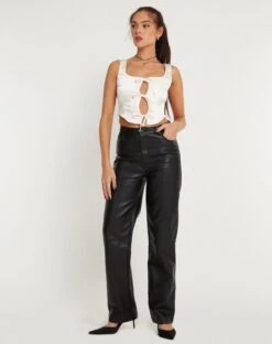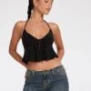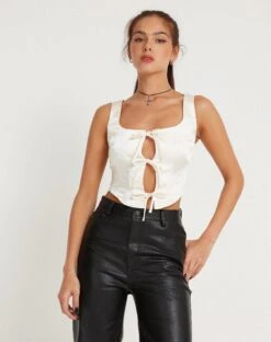 Chic vibes with Santina. This satin top features thick straps, a scoop neckline with a tie fastening down the front. Finish the look with our Zova trousers.Â