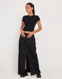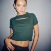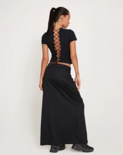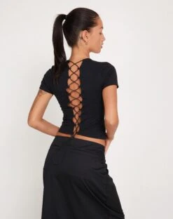 The top with a twist – The Sayda top features a regular fit with short sleeves, a crew neckline and open tie back. Simply style with our Haisley cargo skirt.Â