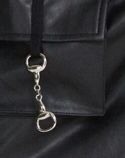 Mini wrap skirt in a black PU fabric, with hardware fastening at the side seam and 3D patch pocket. Featuring a metal hardware on the flap. Complete the look with our Olivia jacket and a black tee.Â